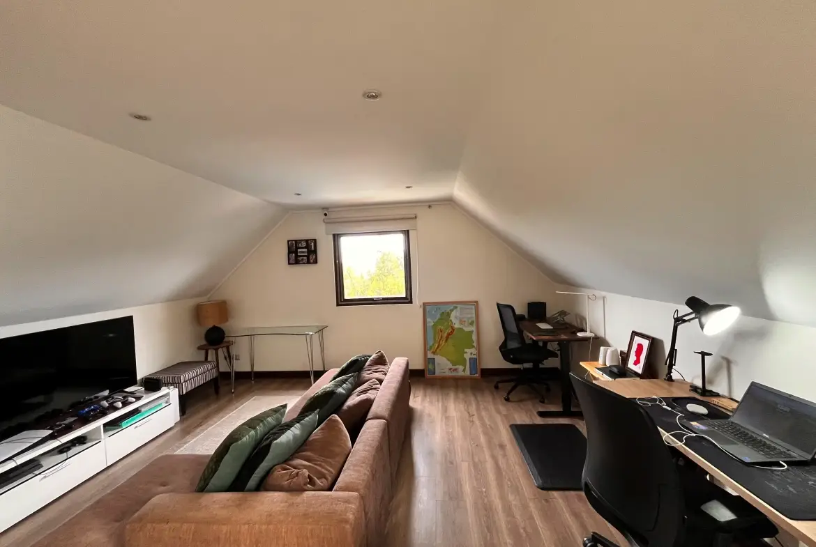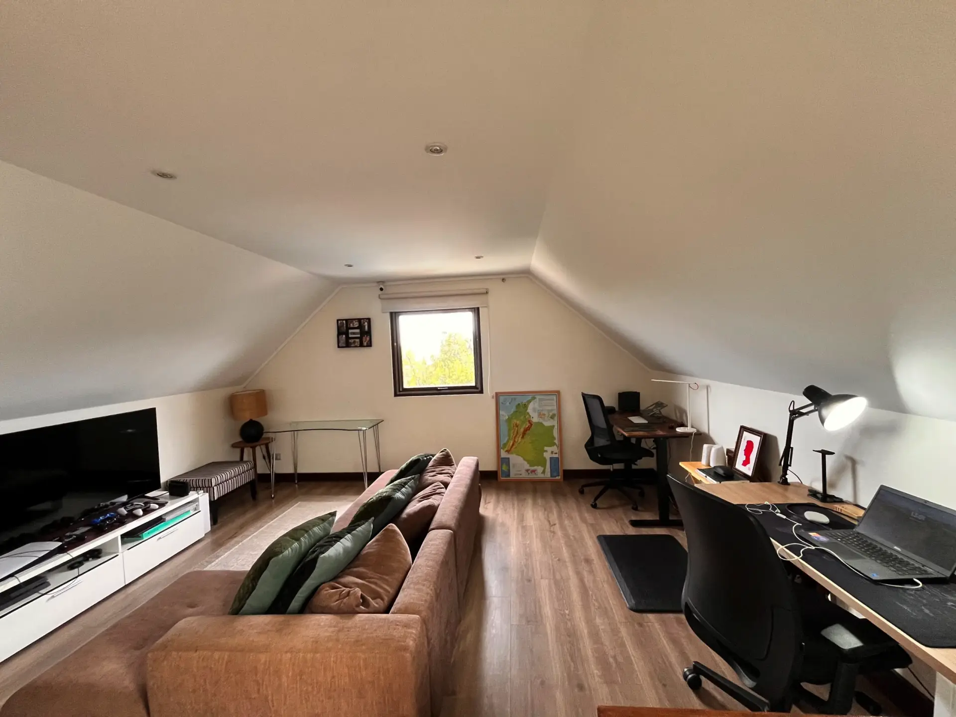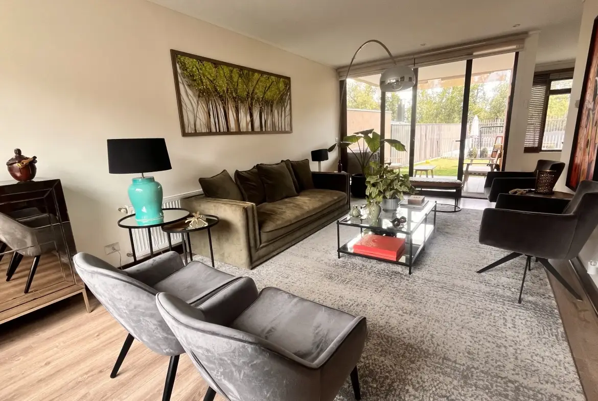 Amplia sala de estar con sector para escritorios