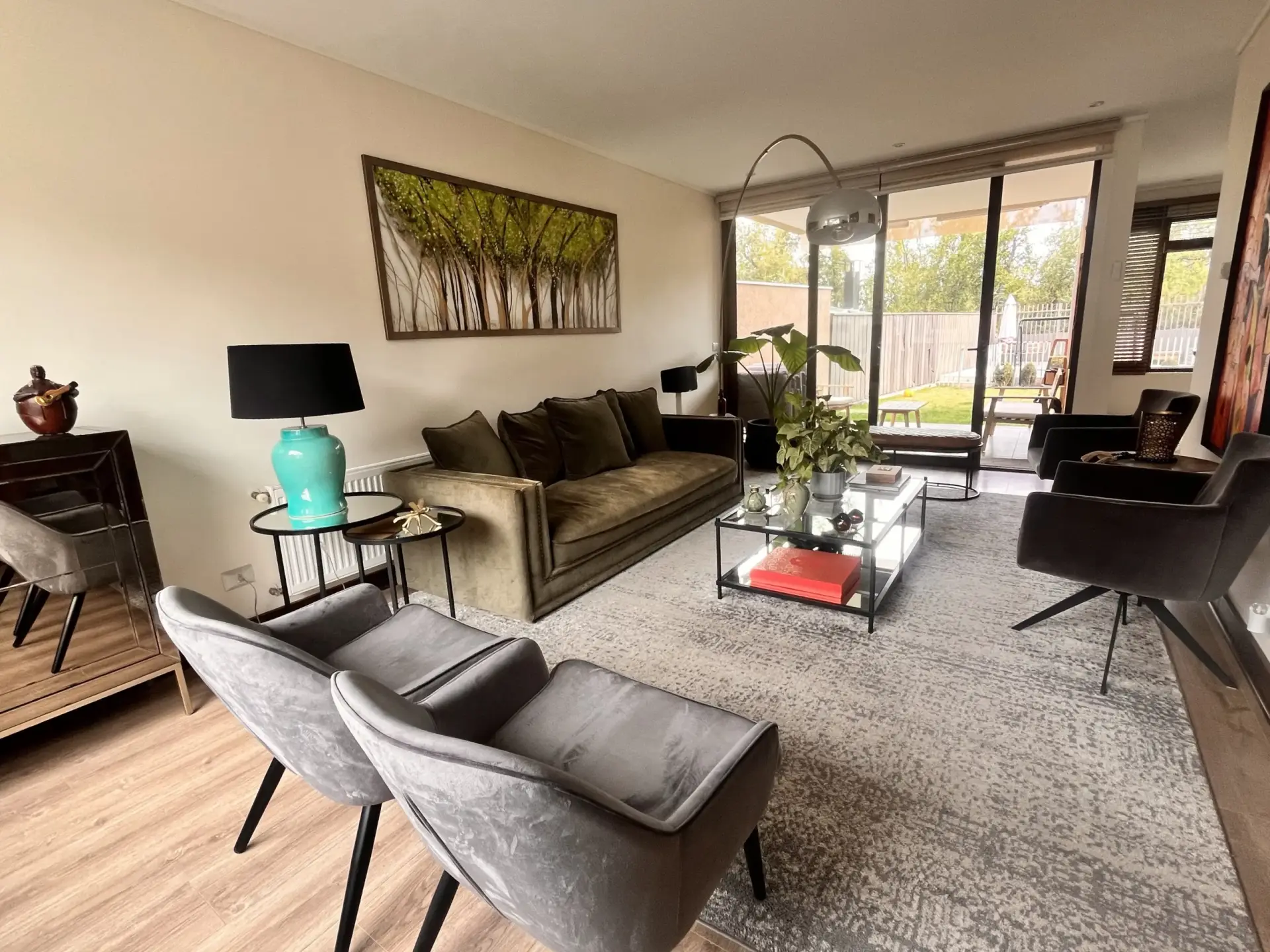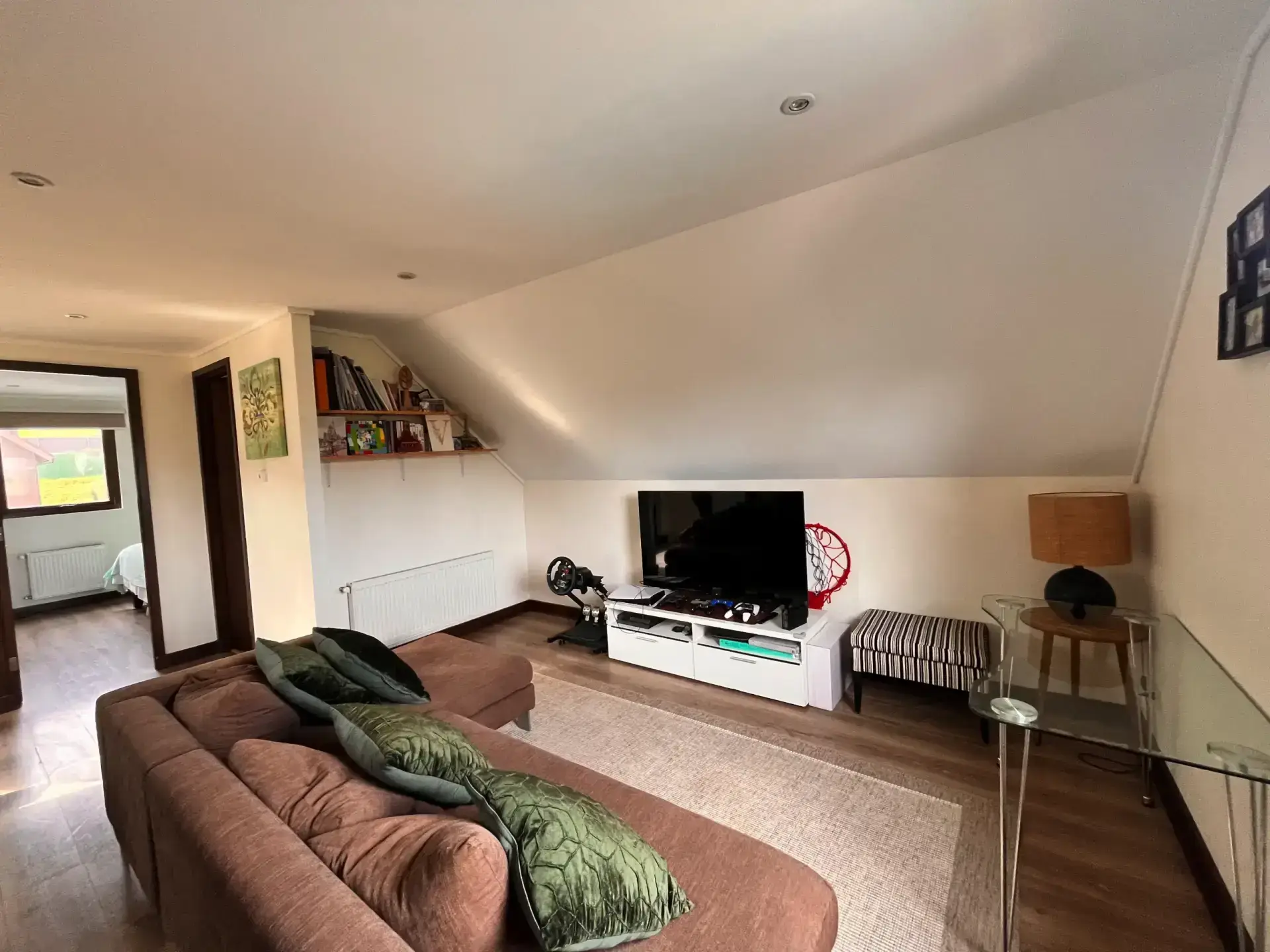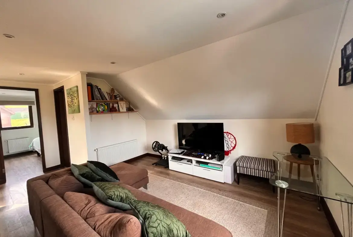 Amplia sala de estar con sector para escritorios