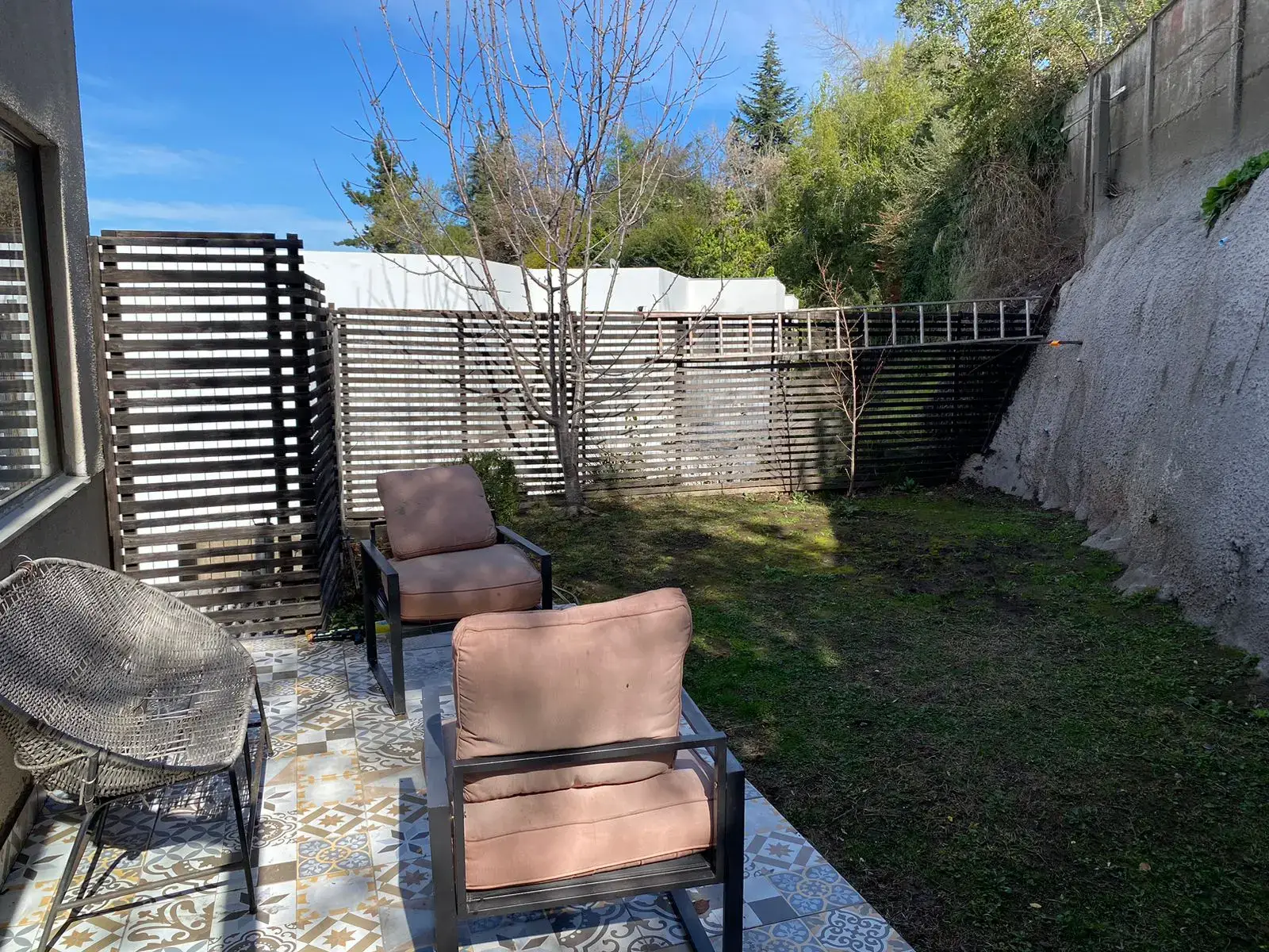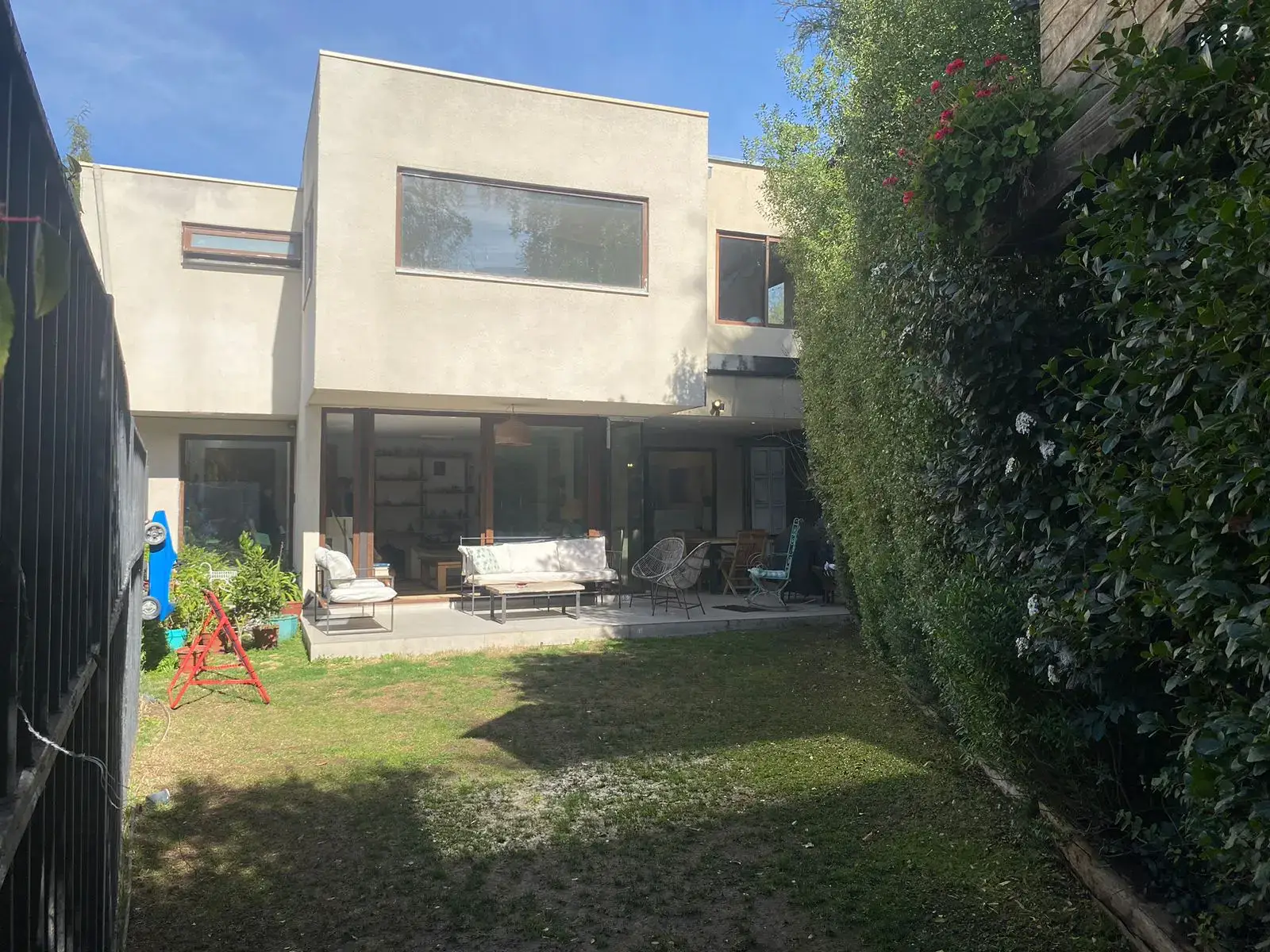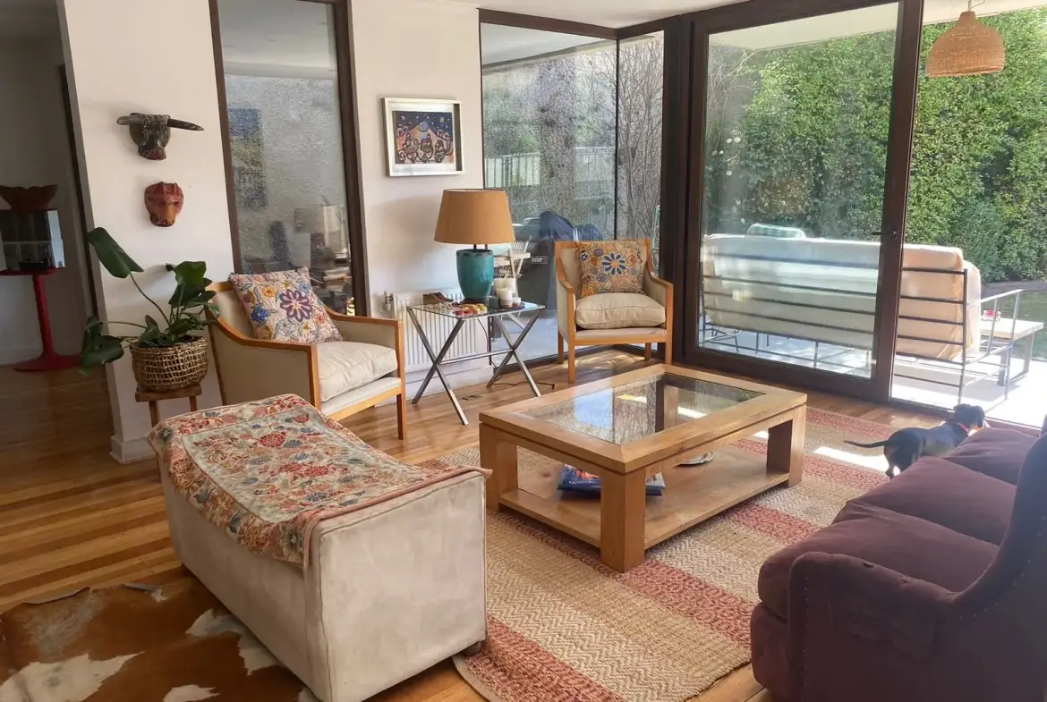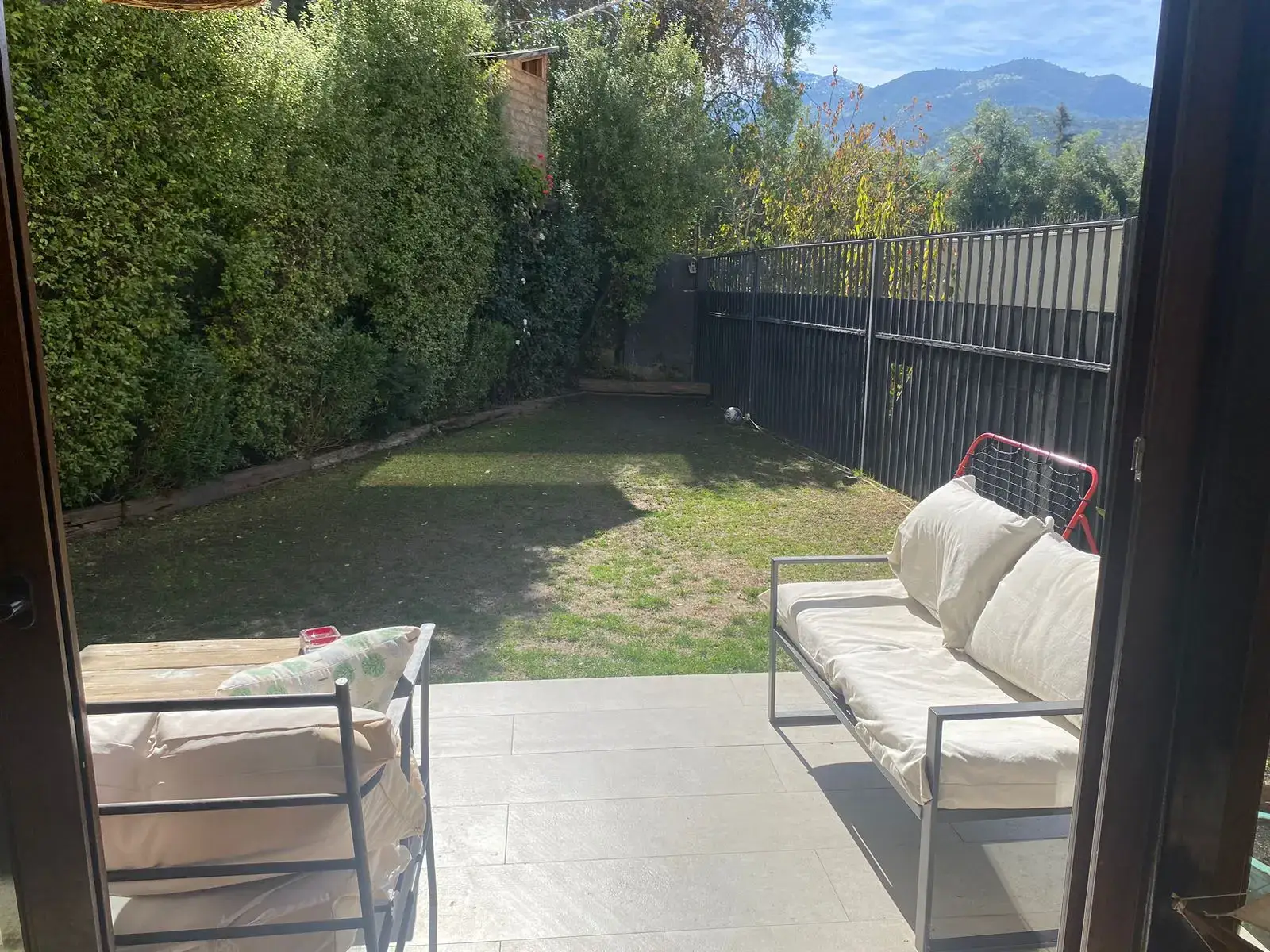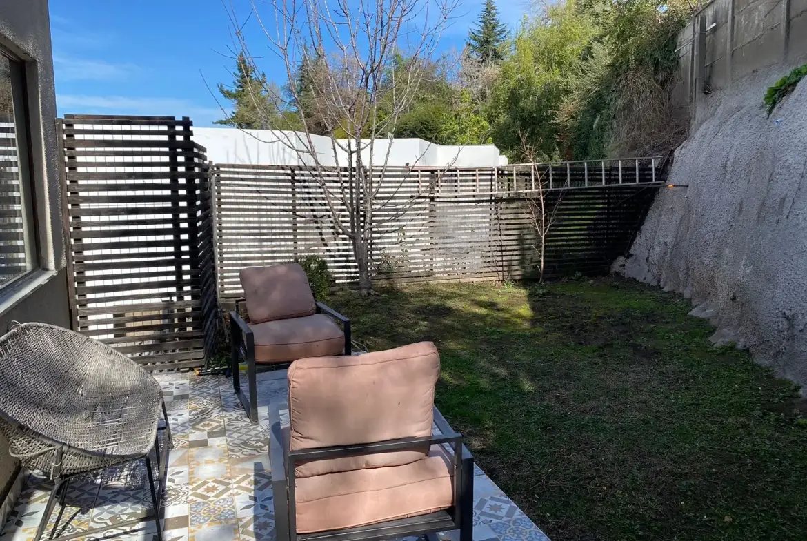 – Living comedor de buen tamaño con salida a terraza techada y jardín con riego automático.