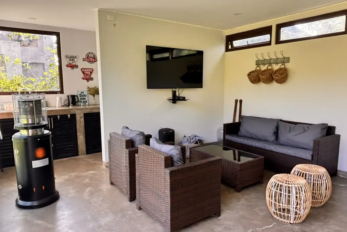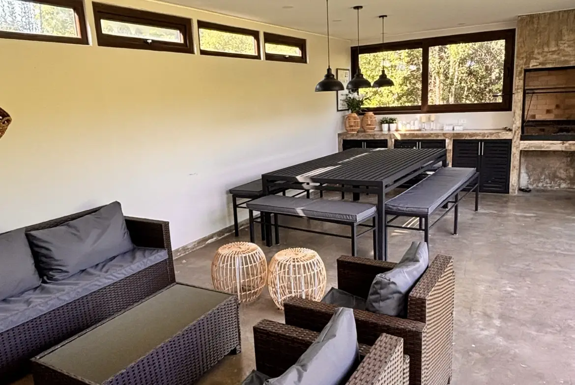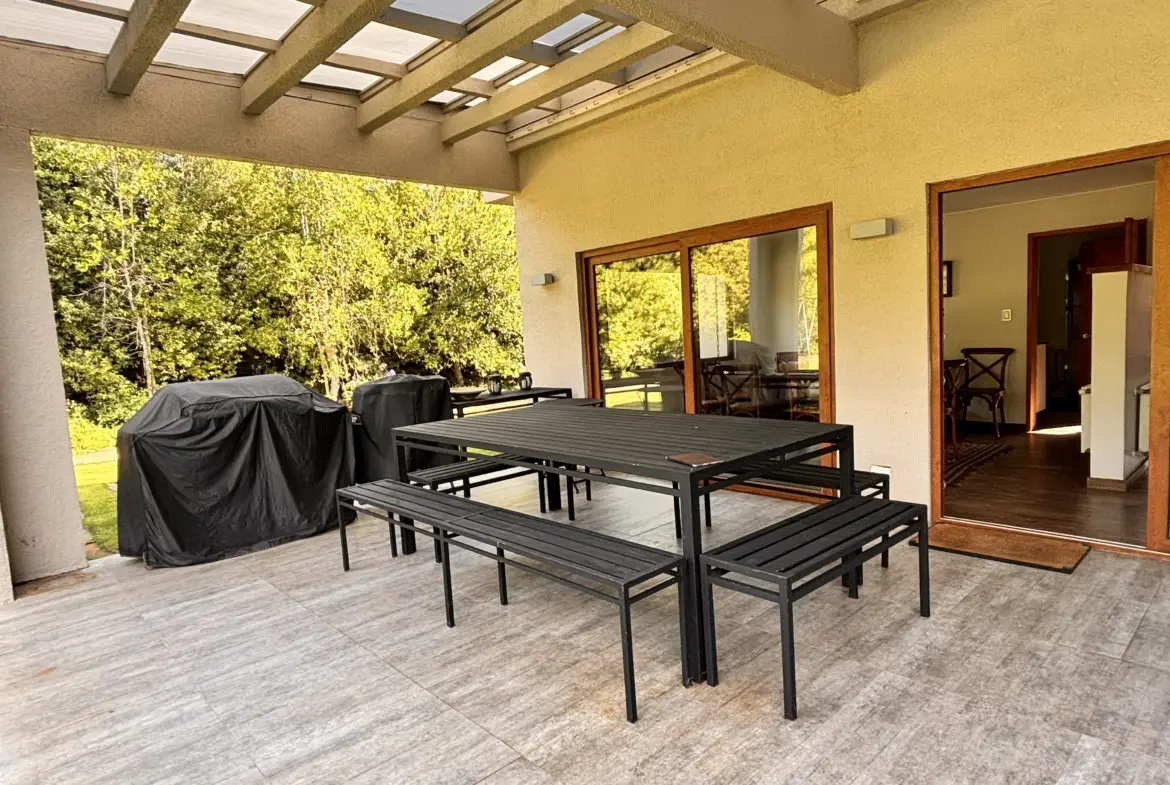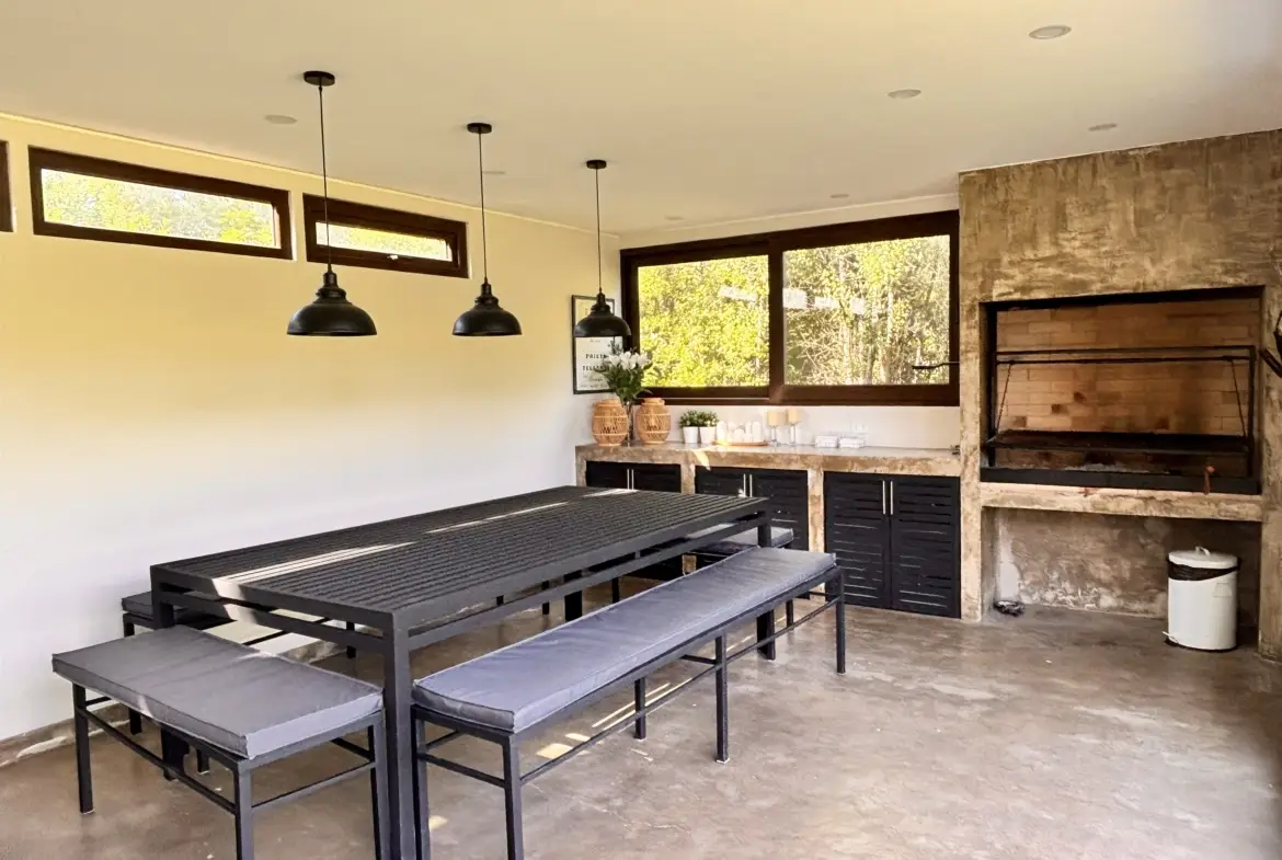 Quincho aparte de la casa cerrado con parrilla a carbón, living y comedor, cocina y baño propio.