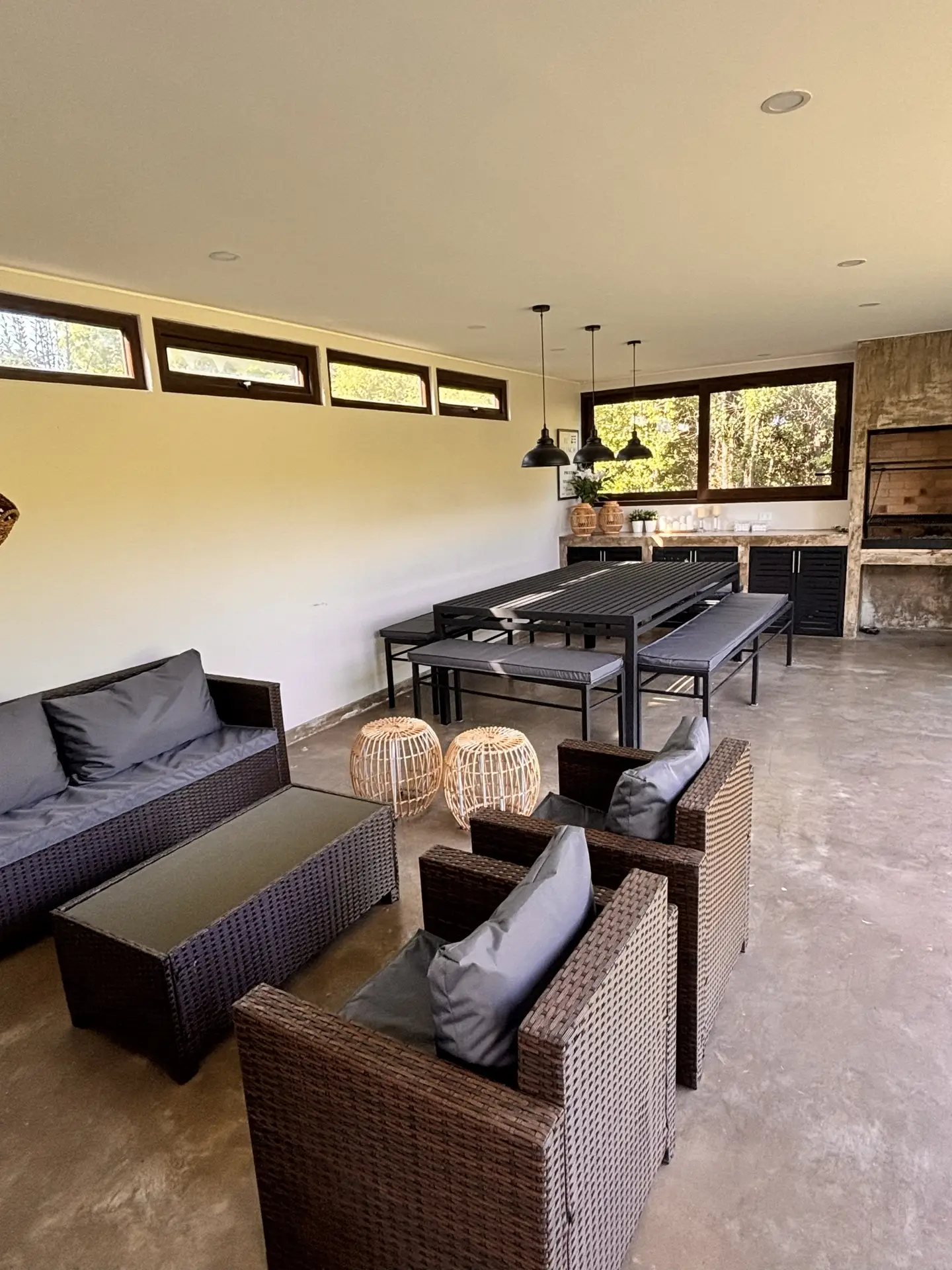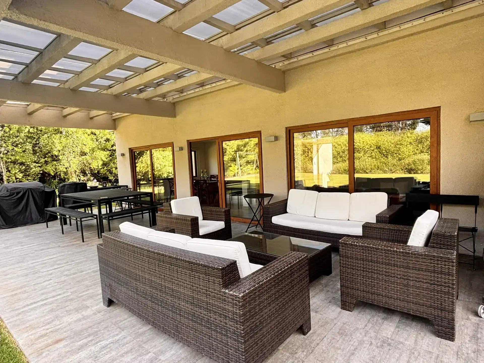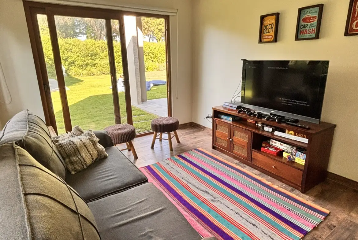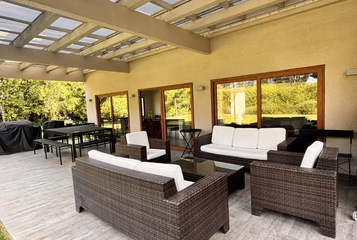 Quincho aparte de la casa cerrado con parrilla a carbón, living y comedor, cocina y baño propio.