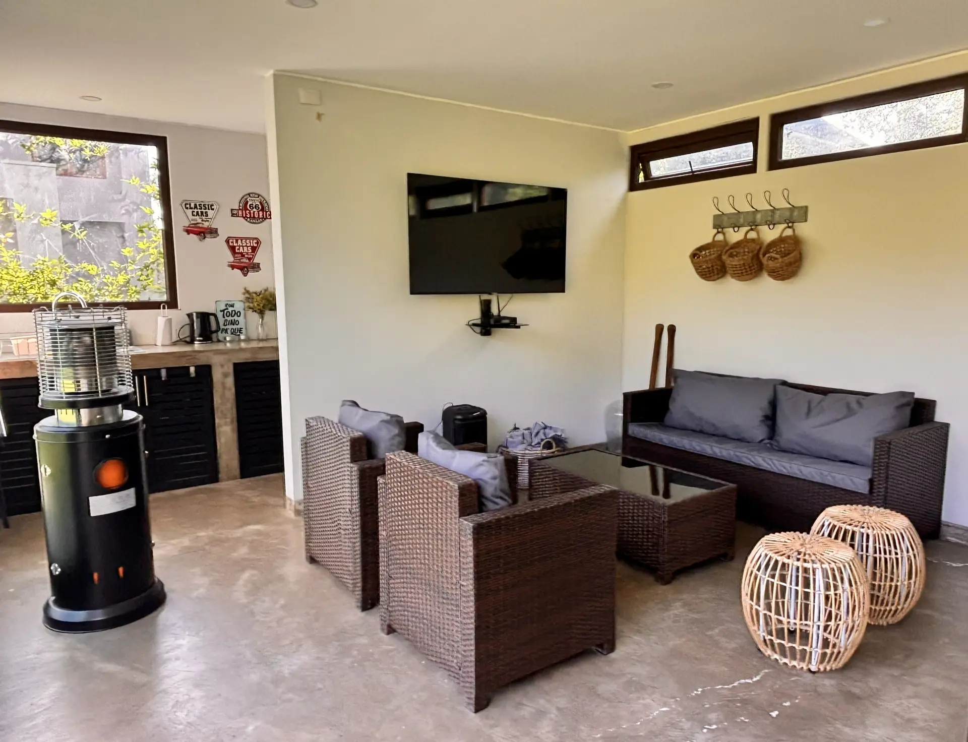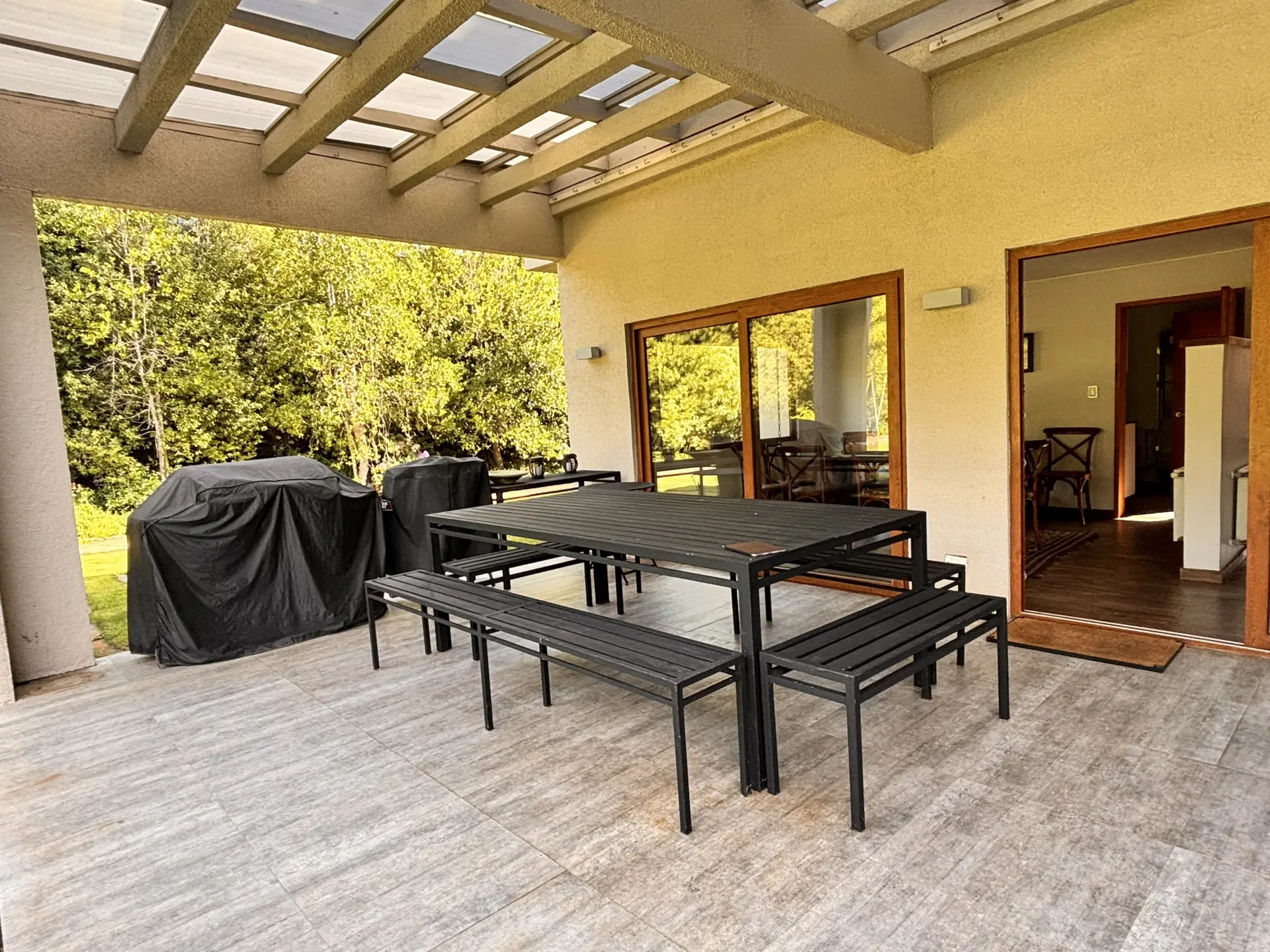 Terraza techada con parrilla y disco