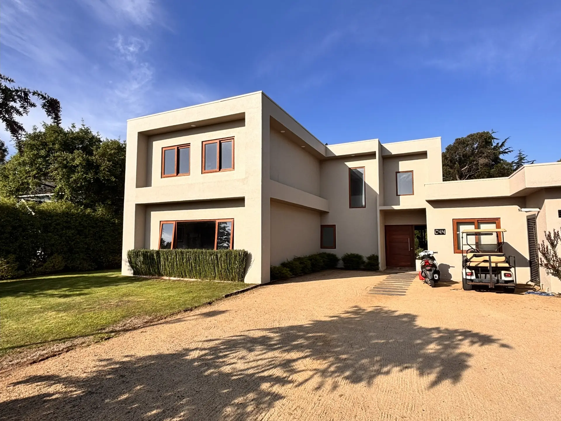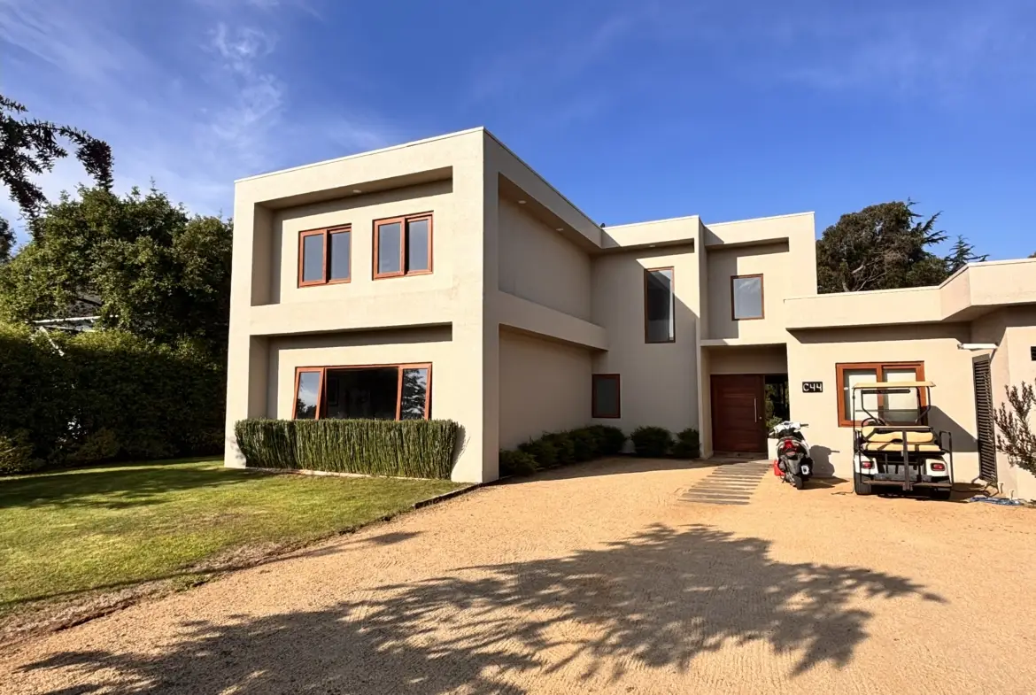 La casa cuenta con una puerta en el jardín que conecta con la calle principal, frente al club.