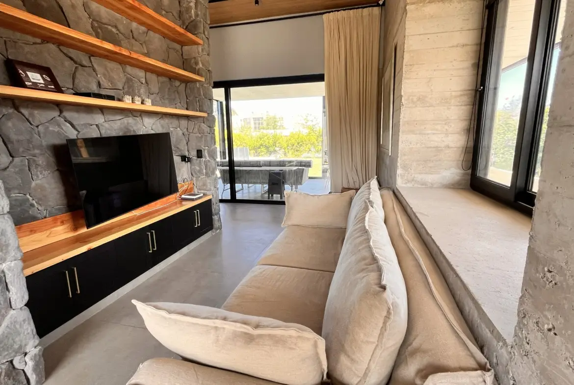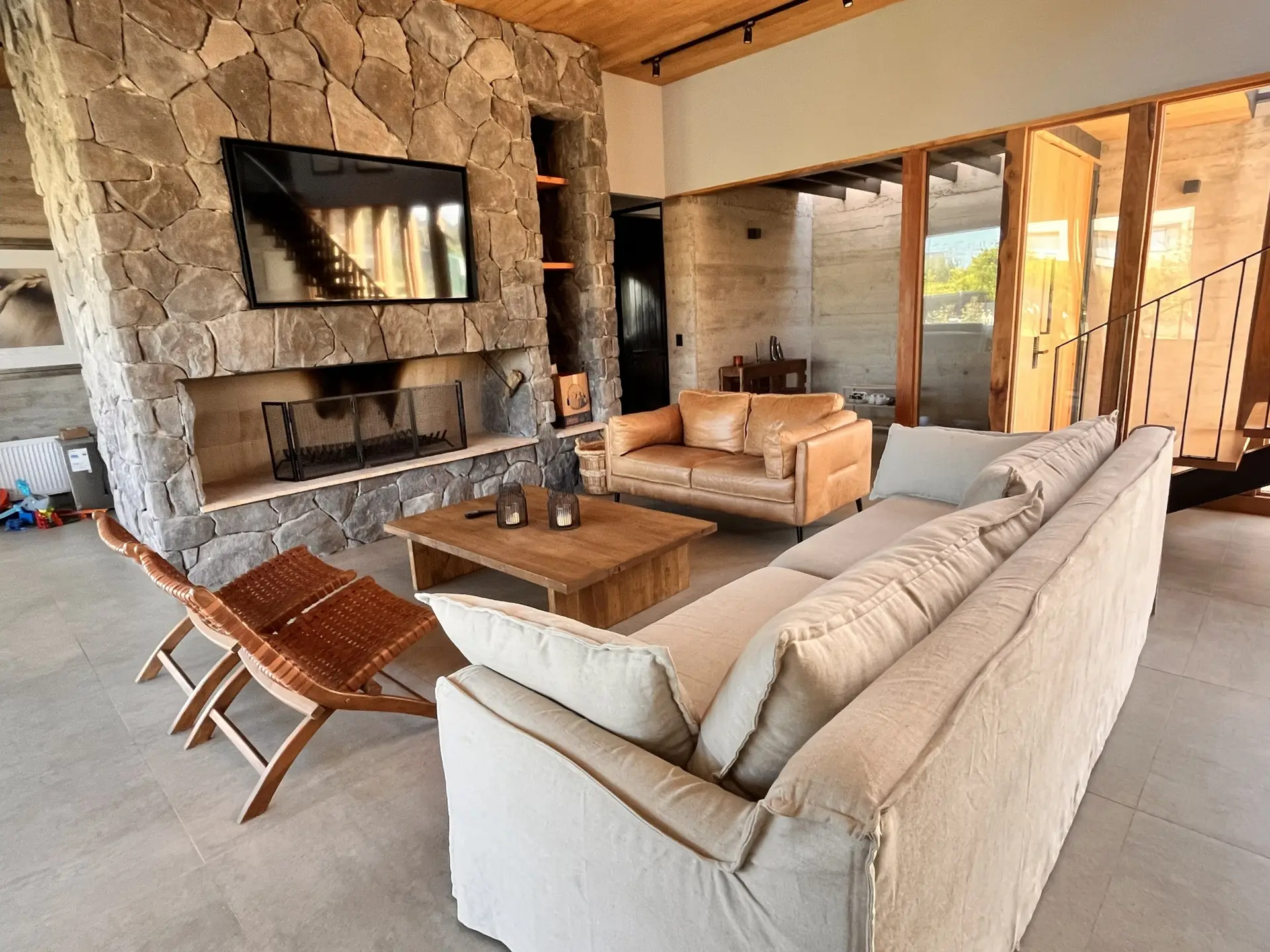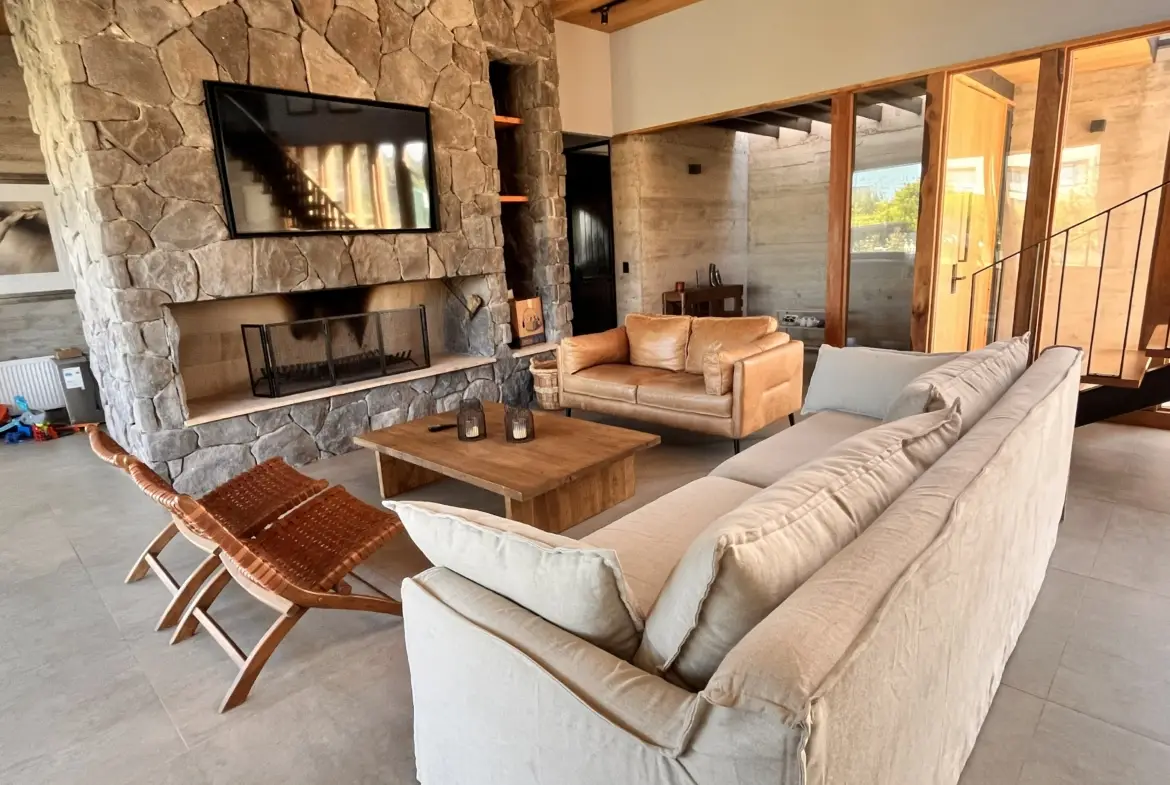 Living con tv y chimenea