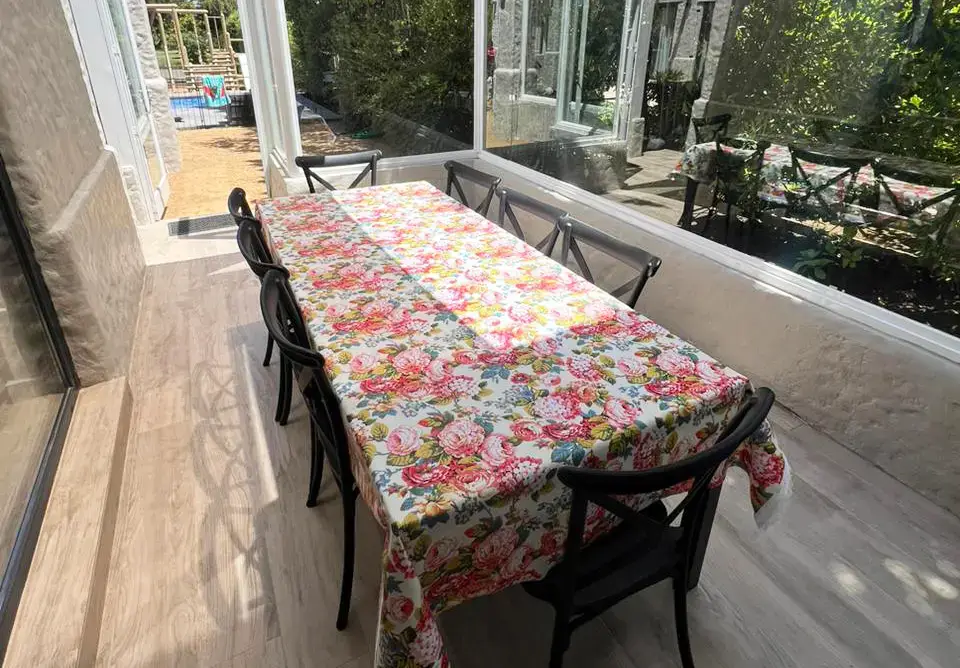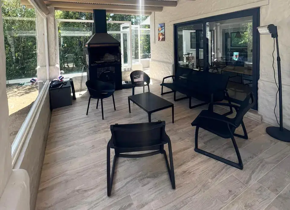 Terraza techada y semicerrada