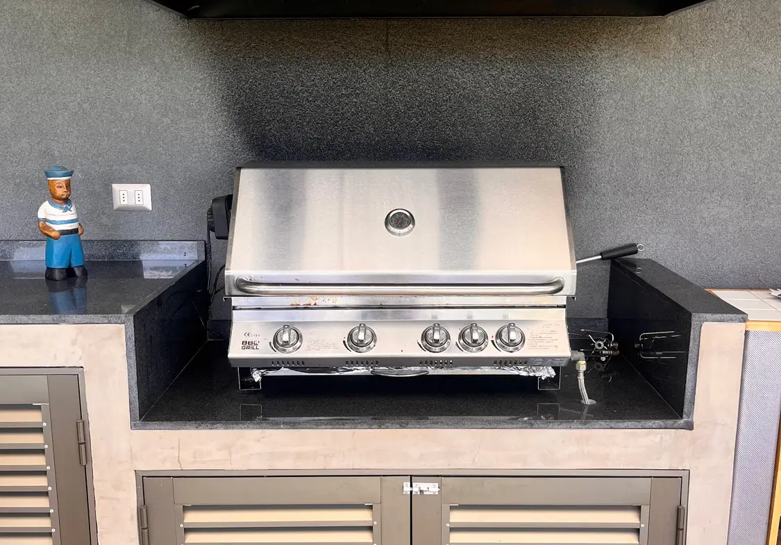 Terraza techada con quincho, parrilla a gas