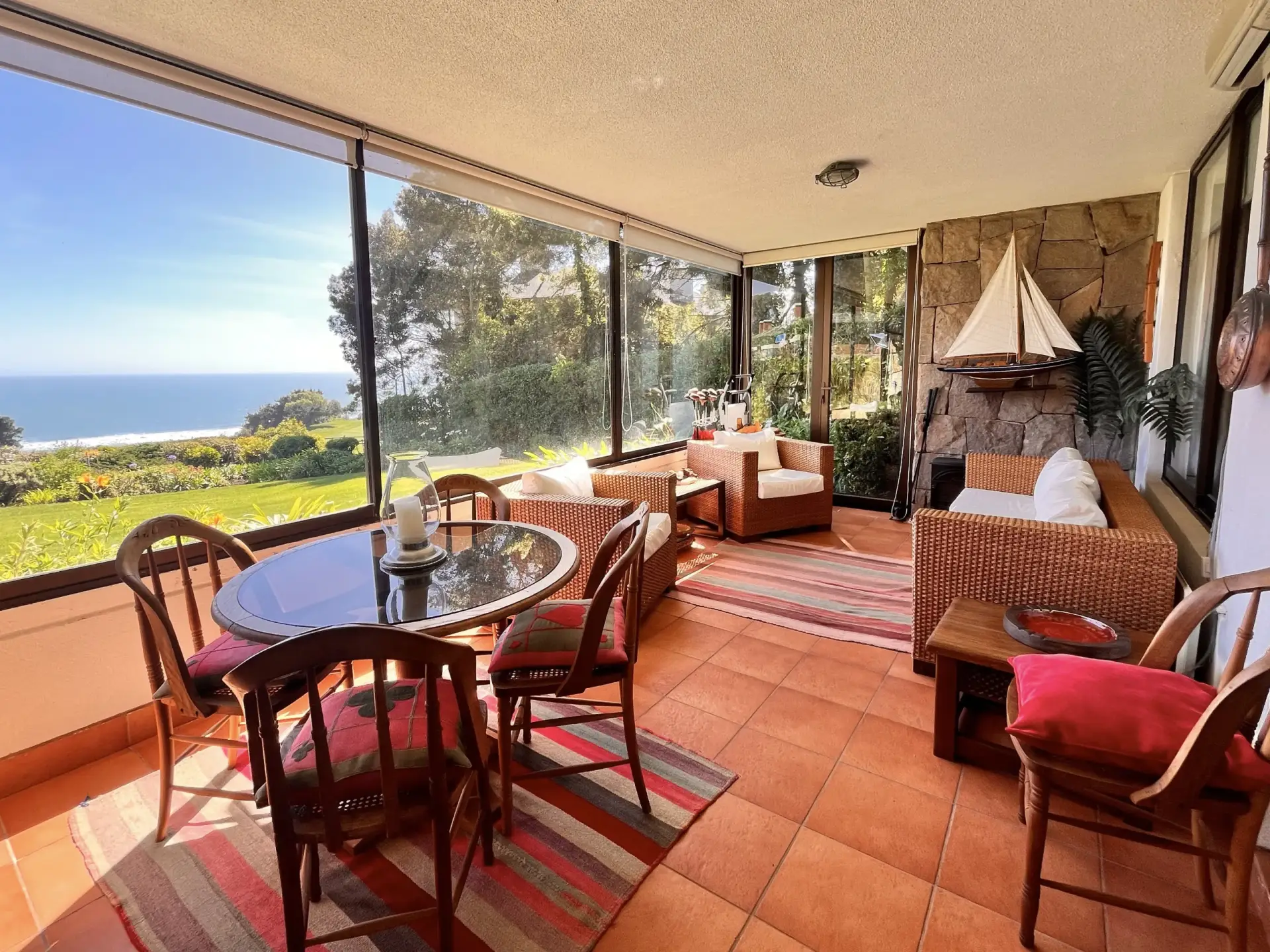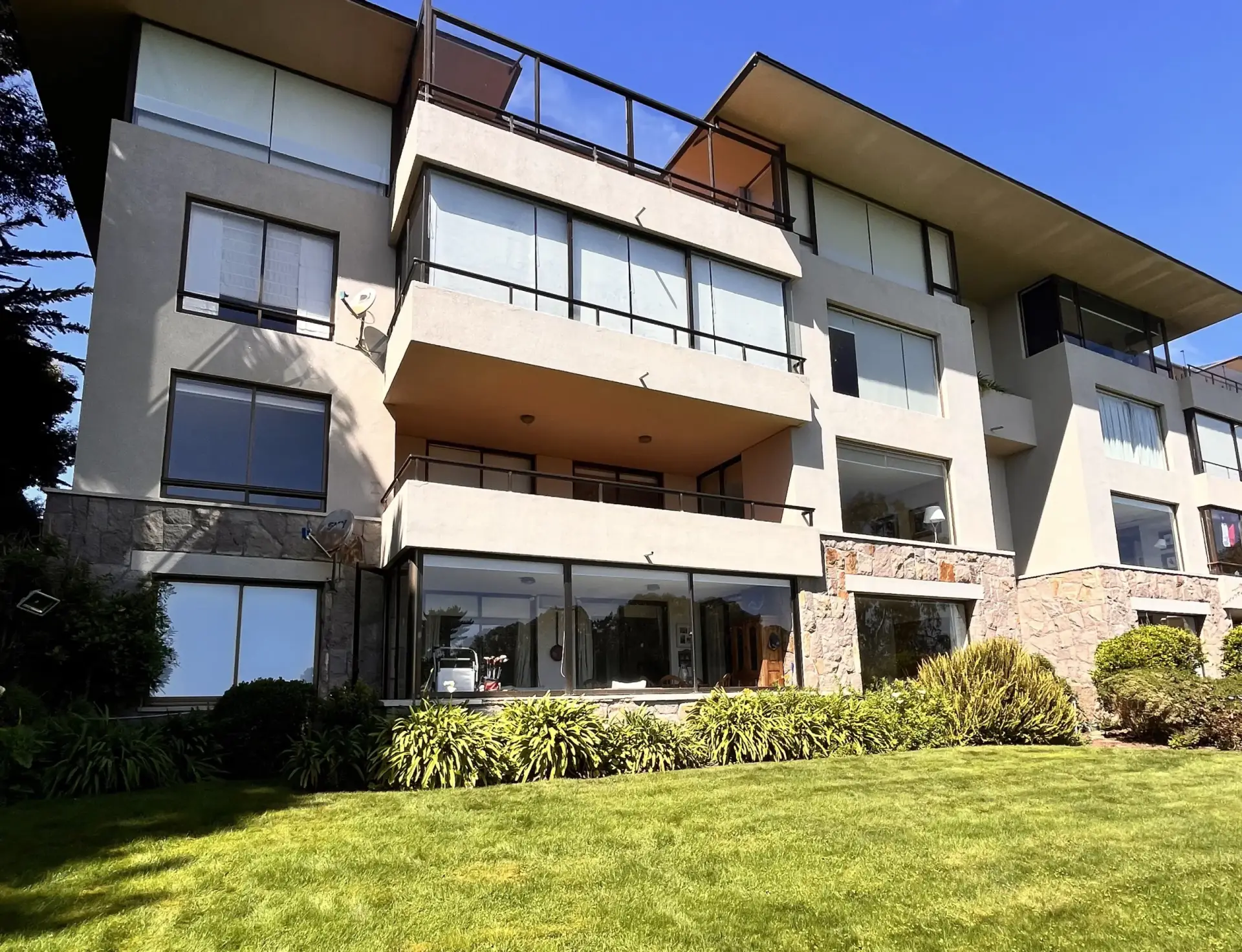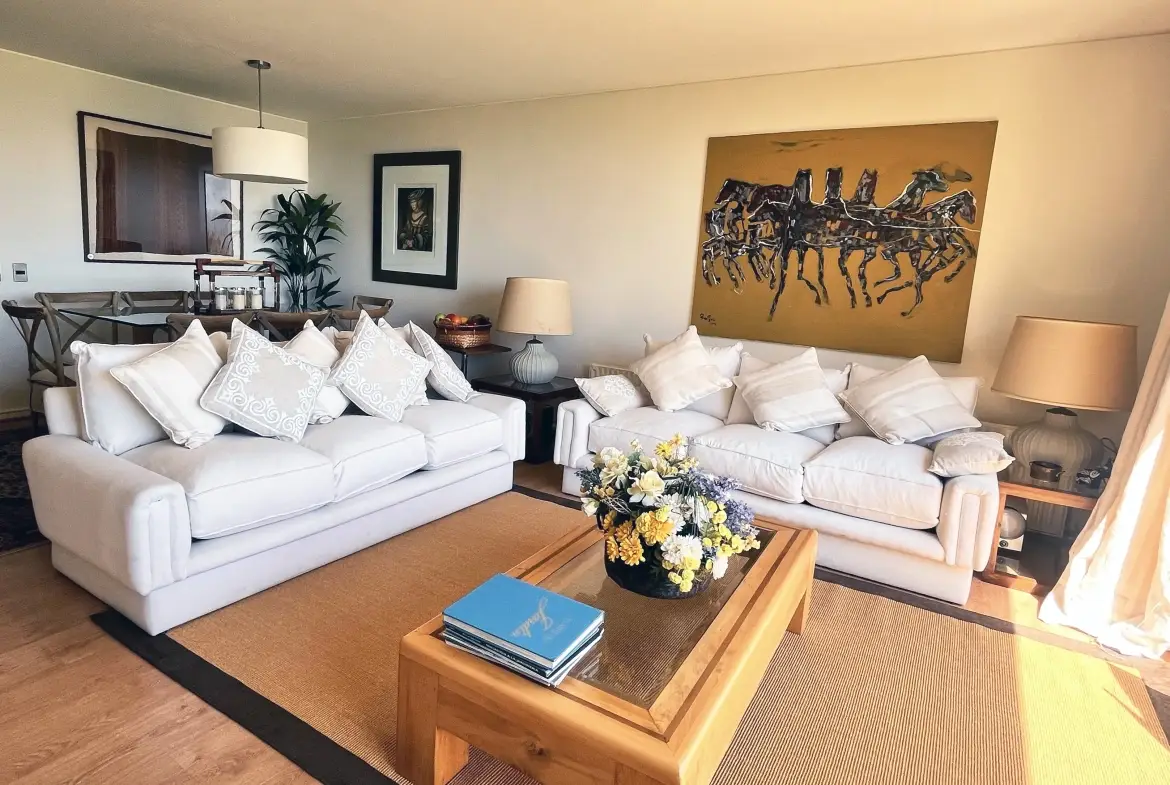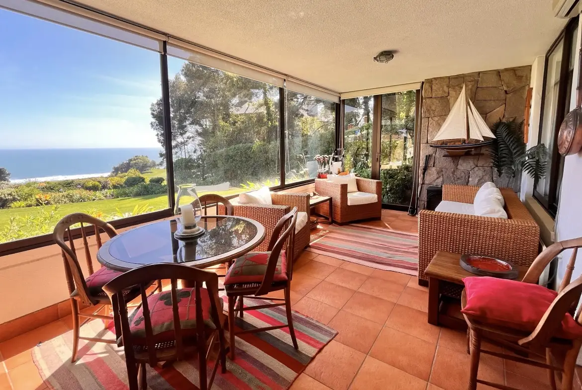 Primer piso con uso y goce de jardín, terraza cerrada y vista a la cancha del golf y al mar.